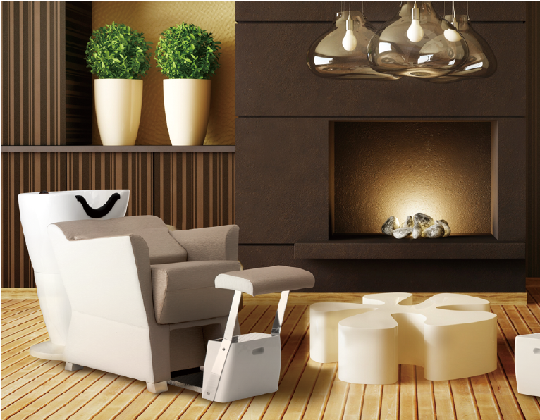 Unlike traditional style shampoo chair, “Shampoo Sofa” combines professional salon with independent sofa design. The curve-shaped independent sink decorates the square indoor space with variety. The single-chair design shows the elegance and luxury of the sofa. This non-traditional shampoo sofa provides you with not only functionalities, but also comfort as well as relaxation.